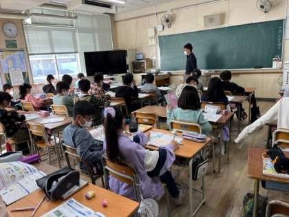 11月7日(月)3時間目、5年2組は外国語科で好きな教科を英語で尋ねたり、答えたりする学習をしていました。