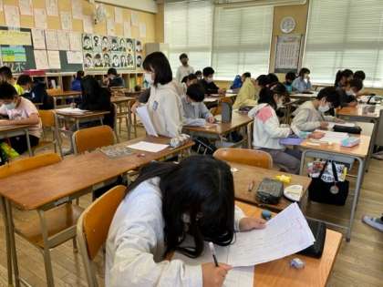 11月8日(火)4時間目、6年1組はテストの後、卒業文集を書いていました。