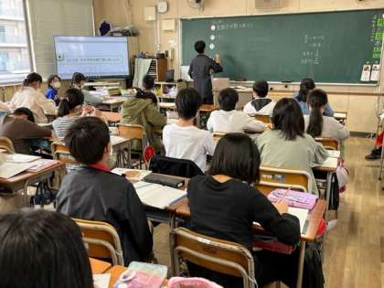 11月10日(木)1時間目、5年1組は算数で整数を分数で表す学習をしていました。
