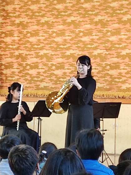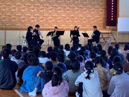 11月15日(火)2時間目、5・6年はフレッシュ・コンサートがありました。大阪芸術大学の卒業生たちによって結成されたアンサンブル「クインテット・カナン」により、木管五重奏の演奏を聞かせていただきました。