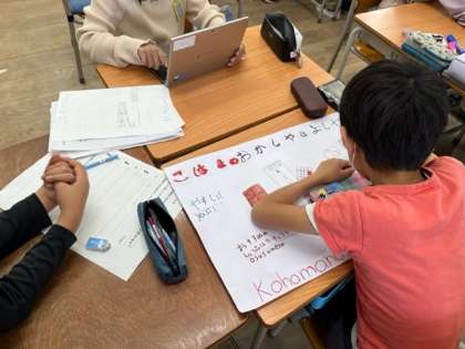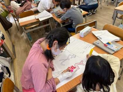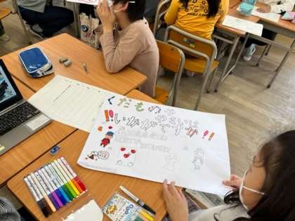 11月15日(火)5時間目、3年1組はお店体験でお世話になったお店のポスターを作っていました。