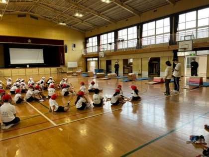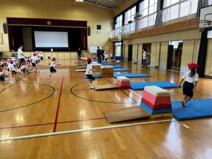11月21日(月)2時間目、1年生は体育で跳び箱をしていました。開脚跳びと閉脚跳びで高さや跳び箱の向きを変え、自分が挑戦するものを決めて練習していました。
