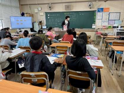 11月21日(月)2時間目、5年1組は算数で「割合を百分率で表そう」というめあてで学習していました。