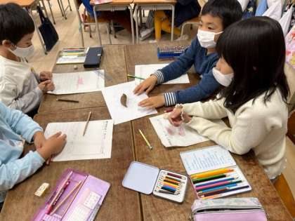 11月21日(月)5時間目、2年1組は生活科で収穫したサツマイモの観察をしていました。今年はとてもできが悪かったそうです。