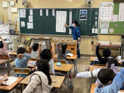 11月22日(火)1時間目、1年1組は国語で「いろいろな ふね」を学習していました。文章のなかで大事なところを見つけていました。