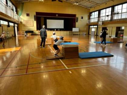 11月24日(木)2時間目、3年2組は体育館で跳び箱をしていました。開脚跳びを練習していました。