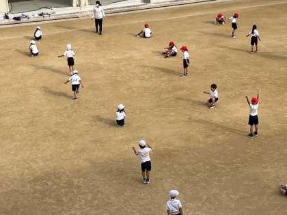11月28日(月)2時間目、1年生は体育でなわとびの練習をしていました。朝礼台の上で跳ぶ先生とどちらが長く跳べるかを勝負していました。さて、先生が勝ったのでしょうか?子どもたちが勝ったのでしょうか?