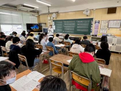 11月28日(月)2時間目、6年1組は外国語科で英語の経年調査の過去問題を使って学習していました。
