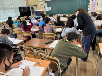 11月29日(火)3時間目、6年1組は算数で経年調査対策の過去問題をしていました。