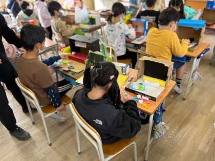 11月30日(水)3時間目、3年2組は図工で粉浜「笑」店街を作っていました。とても楽しそうです。