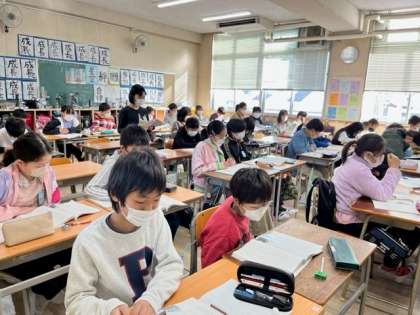 12月5日(月)1時間目、5年1組は国語で「大造じいさんとがん」の朗読会をしていました。