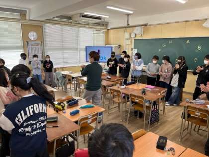 6年1組 外国語科 公開日 2022/12/08 更新日 2022/12/08 6年生 12月8日(木)3時間目、6年1組は子どもたちが円になって、色の名前を英語で言うゲームをしていました。 いいね(0)