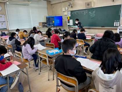 12月12日(月)1時間目、4年2組は国語でテストの答え合わせをして、注意すべき点を確認していました。