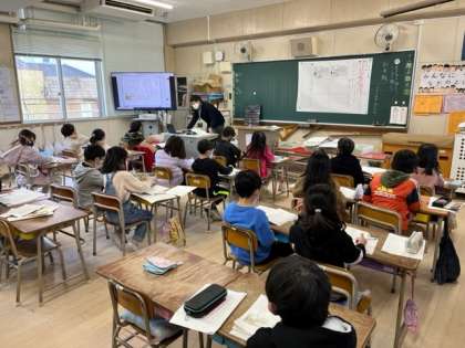12月15日(木)1時間目、2年2組は国語で「お手紙」を学習していました。二人の様子や気持ちの変化を読み取っていました。