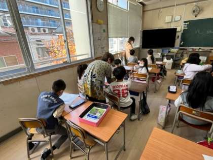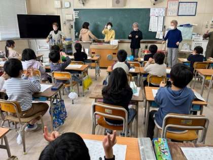 12月15日(木)3時間目、2年1組が手話体験を行いました。一人一人、自分の名前を手話や指文字で教えていただき、みんなの前で発表しました。