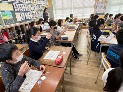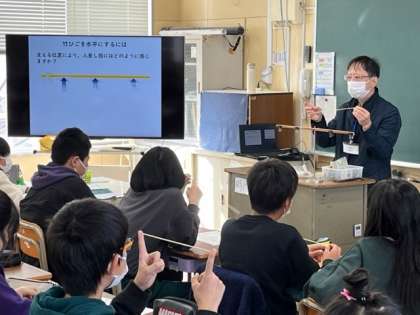 12月16日(金)2時間目、6年1組は理科特別授業がありました。ゲストティーチャーに「てこ」のことを教えていただきました。子どもたちのプリントには「あらふしぎ!アートに『てこ』のはたらきがかくれている」と書かれていました。
