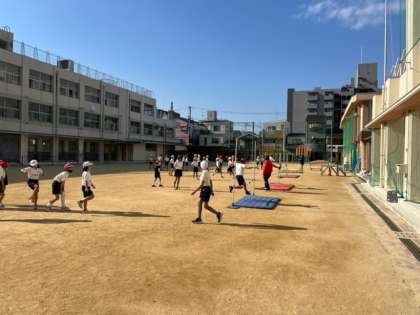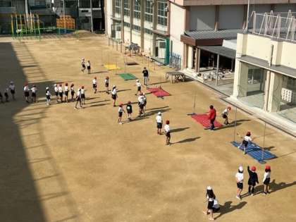 12月16日(金)3時間目、4年1組は体育で走り高跳びをしていました。