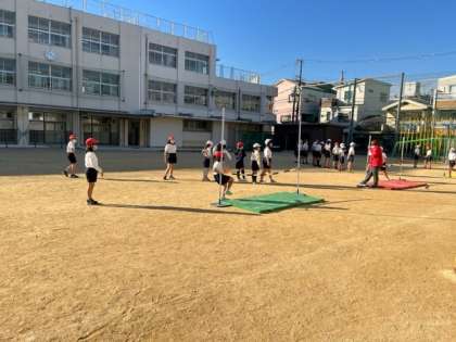 12月20日(火)1時間目、4年1組は体育で走り高跳びをしていました。短い助走で踏み切るタイミングをつかもうとしていました。