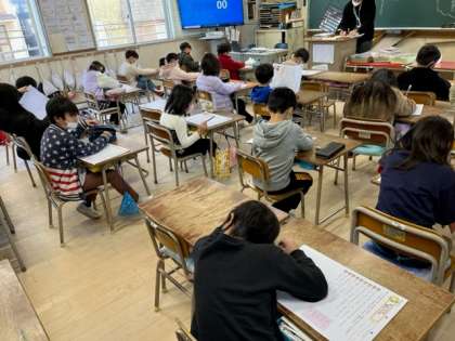 12月20日(火)2年2組は国語で「話しじょうず 聞きじょうず」のプリントをしていました。