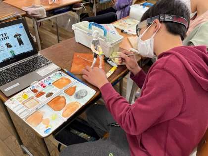 1月16日(月)4時間目、6年2組は図工で「将来の自分」の仕上げをしていました。