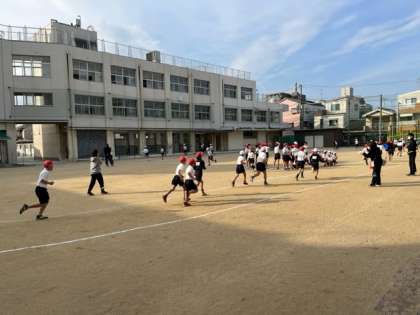 1月24日(火)1時間目、4年生は体育でかけ足をしていました。