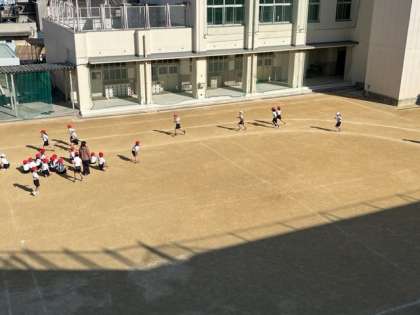 1月26日(木)3時間目、1年生は体育でかけ足をしていました。走る人と周回を数える人に分かれていました。周回を数える人からの「ファイト、ファイト」の声がだんだん大きくなってきました。