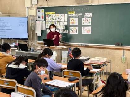 1月26日(木)3時間目、4年2組は栄養指導がありました。「野菜の大切さを知ろう」というめあてで野菜のはたらきを調べていました。