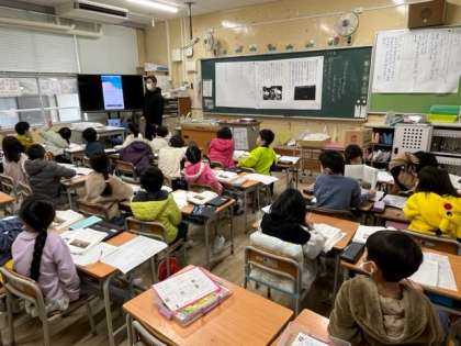 1月27日(金)2時間目、1年2組は国語で「子どもをまもる どうぶつたち」を学習していました。コチドリついて調べていました。