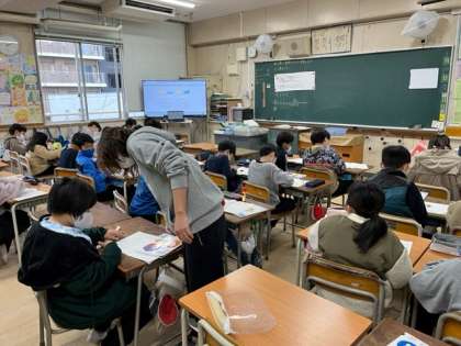 1月27日(金)2時間目、4年1組は算数で、小数に整数をかける計算の仕方を考えていました。