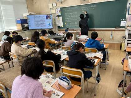 1月30日(月)2時間目、4年2組は社会科で包丁づくりが、どのように変化したかを調べていました。