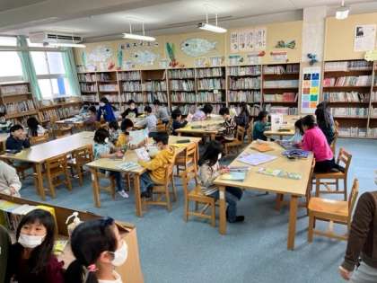 2月1日(水)4時間目、2年1組は図書で本を読んだり、探したりしていました。