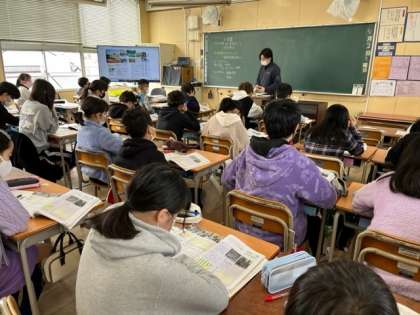 2月2日(木)1時間目、6年2組は社会科で「経済の発展と人々のくらしの変化」を学習していました。