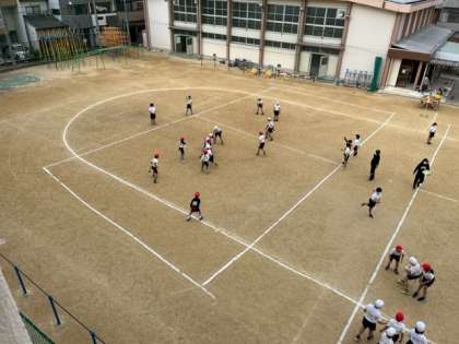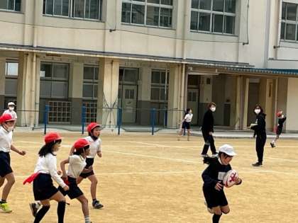 2月2日(木)4時間目、4年1組は体育でタグラグビーをしていました。体の大きいい人より小さい人の方が相手をかわしてトライしているように見えました。