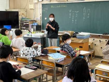 2月6日(月)1時間目、4年1組は図工で彫刻刀の名前と使い方を教わっていました。