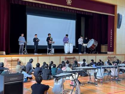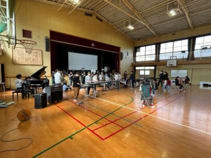 2月6日(月)3時間目、6年生は楽器を行動に運び「情熱大陸」の練習をしていました。