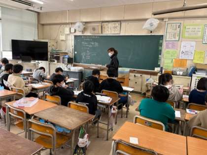 2月7日(火)3時間目、4年生は算数で、2学級を3つに分割して学習していました。