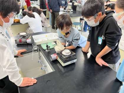 2月7日(火)3時間目、5年1組は理科で、水溶液から水を蒸発させて溶けているものを取り出す実験をしていました。