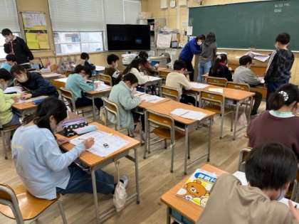 2月13日(月)2時間目、3年1組は算数で計算ドリルのやり直しや、新しいところをして近くにいる先生に見てもらっていました。