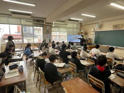 2月14日(火)1時間目、5年2組は外国語科で「自分たちが考えた道案内をしよう」を学習していました。道案内を英語でするのは、結構難しそうですが、子どもたちはできたでしょうか?