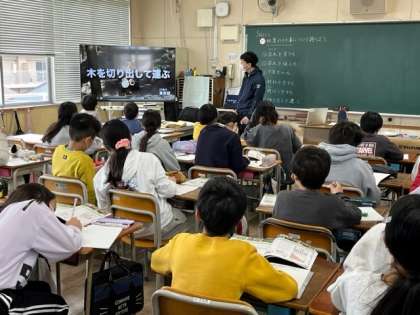 2月14日(火)1時間目、5年1組は社会科で林業について学習していました。