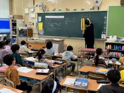 2月14日(火)3時間目、1年1組と2組は算数で20+30の計算の仕方を考えていました。どちらのクラスにも10のまとまりの数え棒が登場していました。