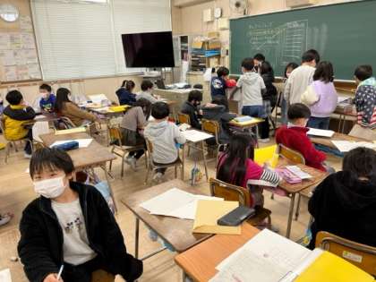 2月16日(木)1時間目、2年2組は生活科で1年を振り返ってできるようになったことや生活科で育てたいきものを思い出してスゴロクを作ろうとしていました。