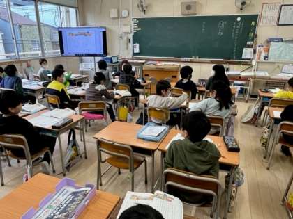 2月20日(月)1時間目、2年1組は国語で「かさこじぞう」を学習していました。大年の市でのじいさまのようすを読み取っていました。