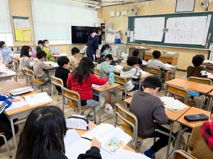 2月20日(月)1時間目、3年1組は国語で「ゆうすげ村のちいさな旅館」を学習していました。3・4場面の美月の登場の場面を読み取っていました。