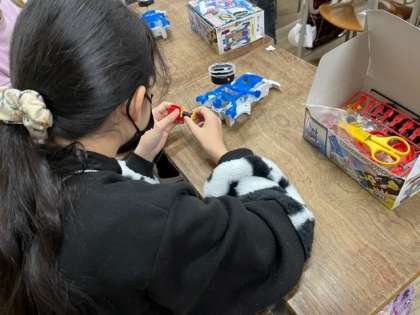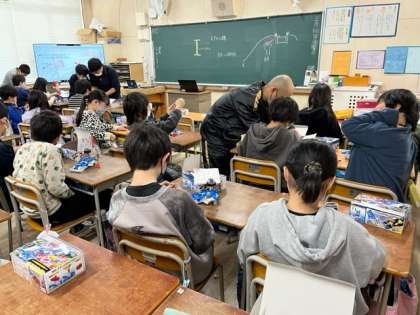 2月20日(月)1時間目、5年2組は理科でエナメル線を巻いてコイルを作っていました。