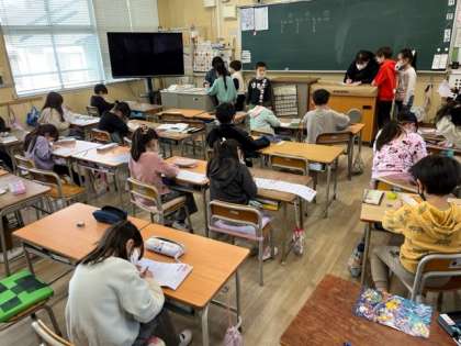 2月21日(火)1時間目、1年1組は国語で漢字ドリルをしていました。