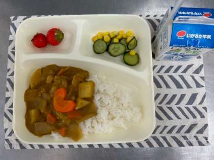 今日のカレーライスには、鶏レバーを使用しています。全身に酸素を運ぶ役割を担う鉄を多く含む食品です。