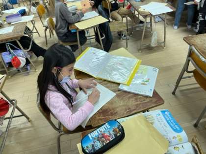 2月24日(金)3時間目、2年2組は生活科で、1年を振り返って文に表現していました。さらにすごろくを考えている人や新聞にまとめようとしている人がいました。