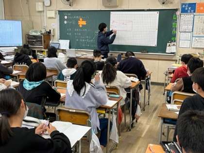 2月24日(金)3時間目、5年1組は算数で円柱の展開図をかいていました。