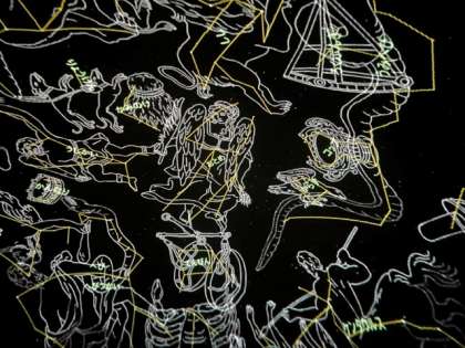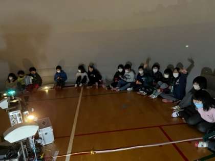 2月24日(金)5・6時間目、4年1組・2組は理科で、体育館でプラネタリウムで星の学習をしました。